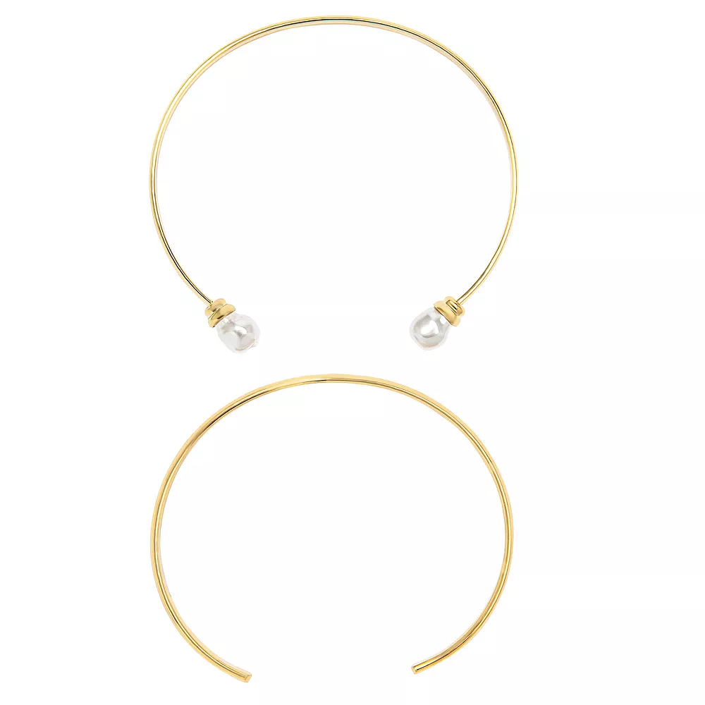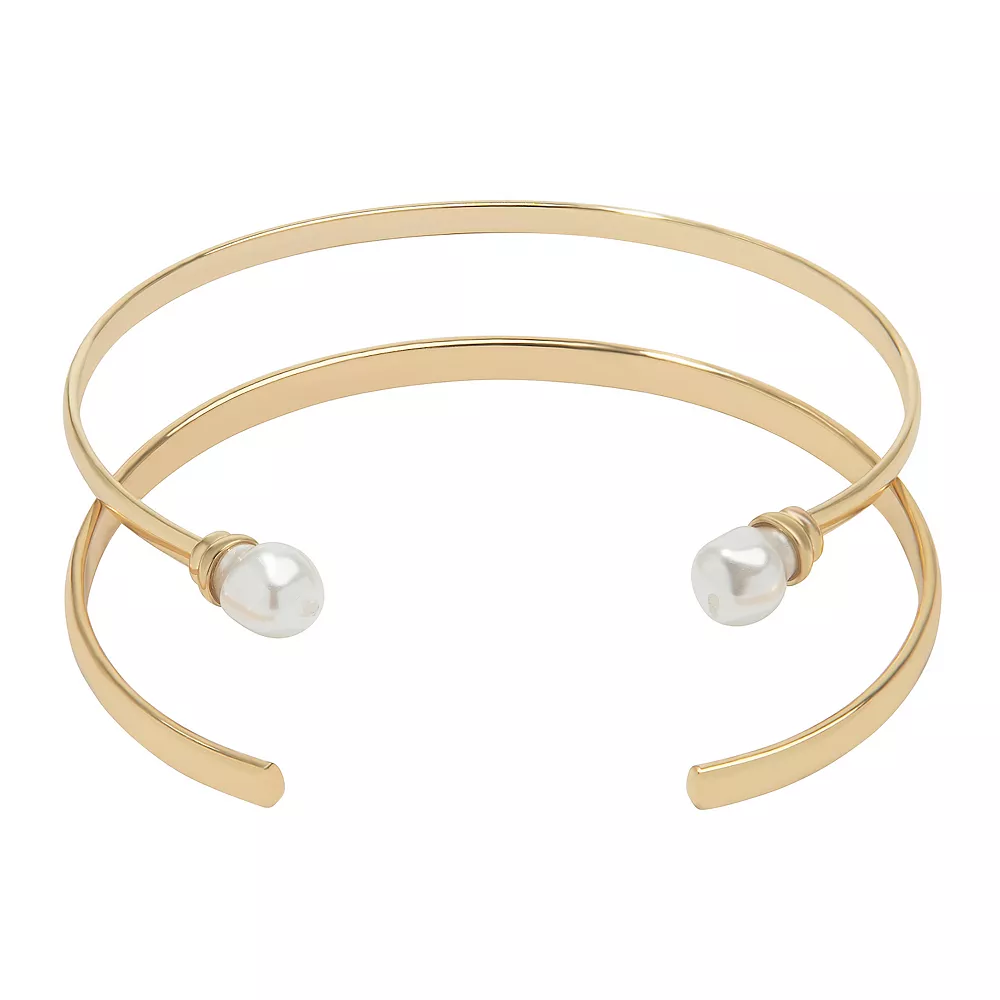 Look your best with this LC Lauren Conrad 2 Pack Organic Pearl Ends Engraved Cuff Bracelet Set.