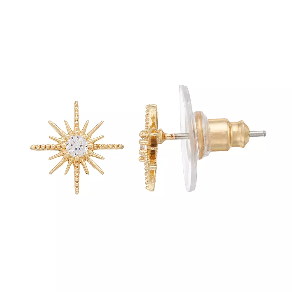 With a stellar art deco-inspired design, these LC Lauren Conrad cubic zirconia starburst stud earrings offer dazzling detail.