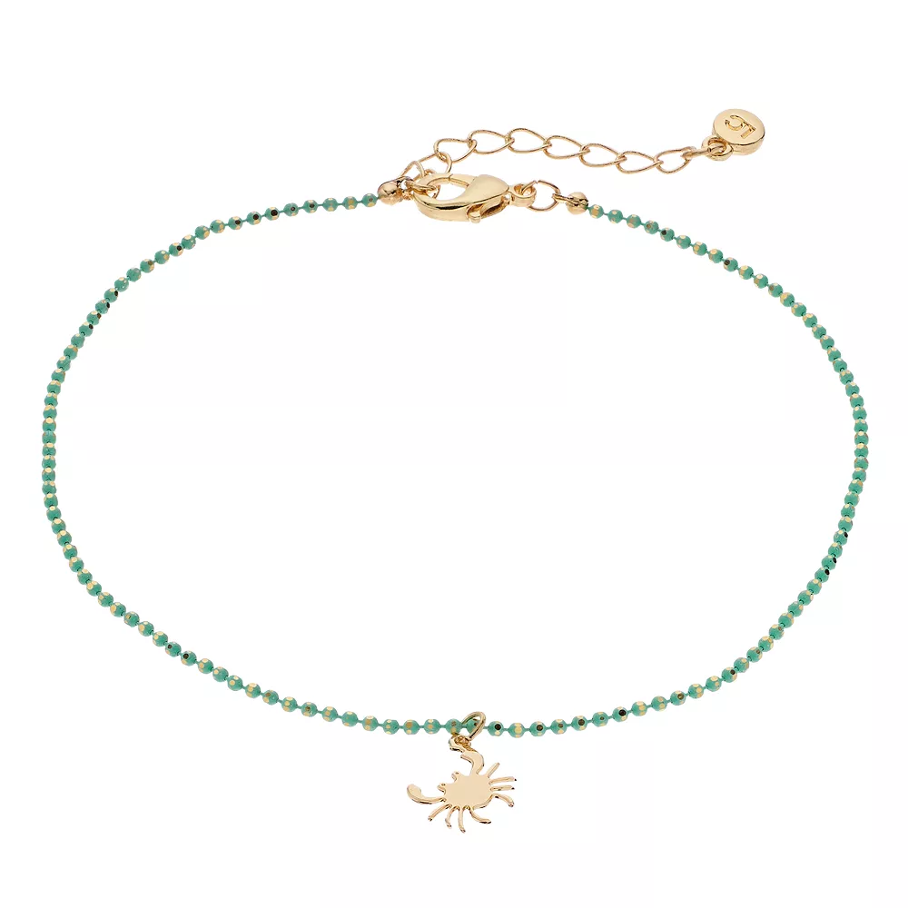 This LC Lauren Conrad anklet features a gold tone crab charm and a green spray chain.