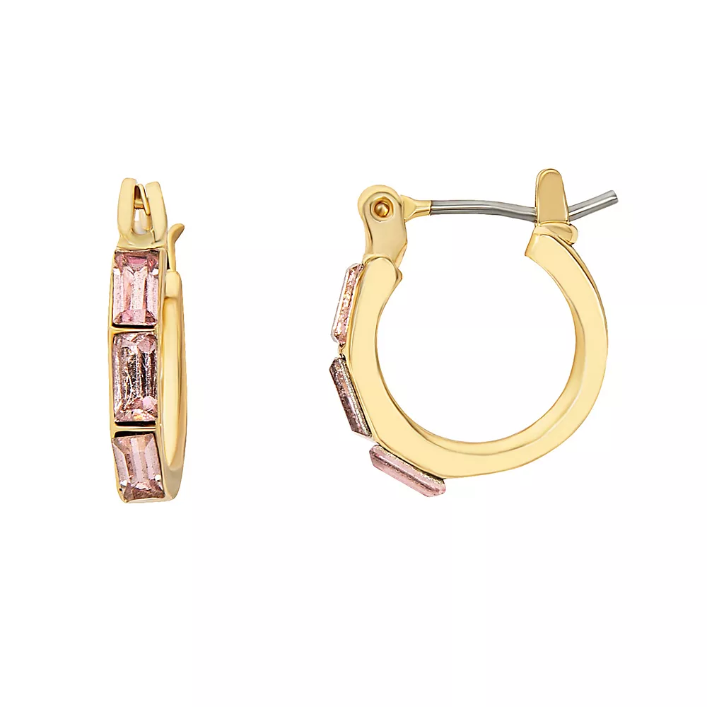 Finish off your look with a touch of sparkle in these LC Lauren Conrad crystal-studded huggie earrings.
