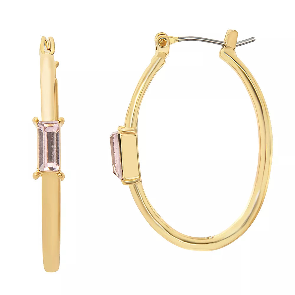 With their baguette-shaped crystal accents and eye-catching oval silhouette, these hoop earrings from LC Lauren Conrad are a fresh take on a classic piece that you’ll find yourself reaching for time and time again.