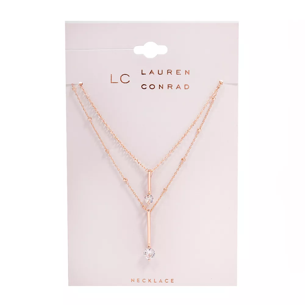 This gorgeous cubic zirconia two-row embellished chain necklace from LC Lauren Conrad is the perfect way to finish any outfit.