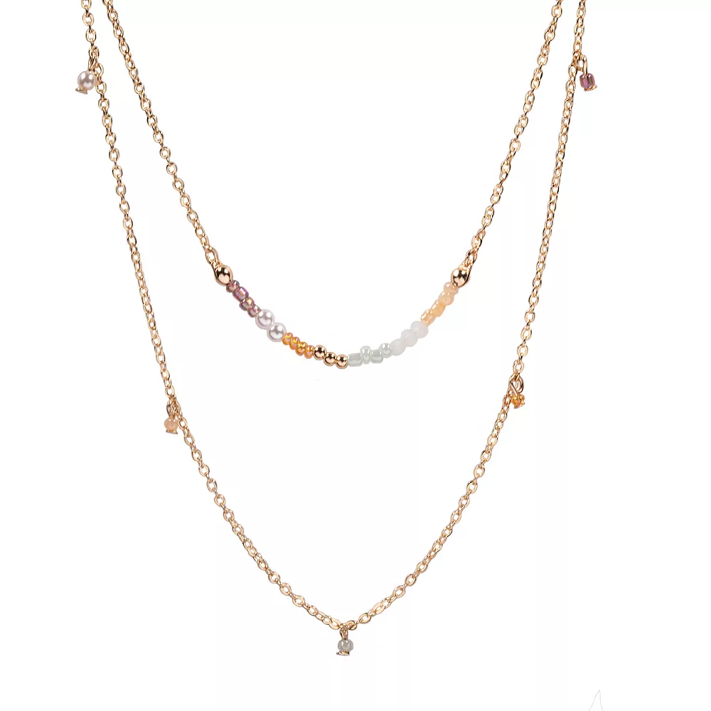 Add a touch of bohemian flair to any ensemble with this beaded gold tone double-strand necklace.