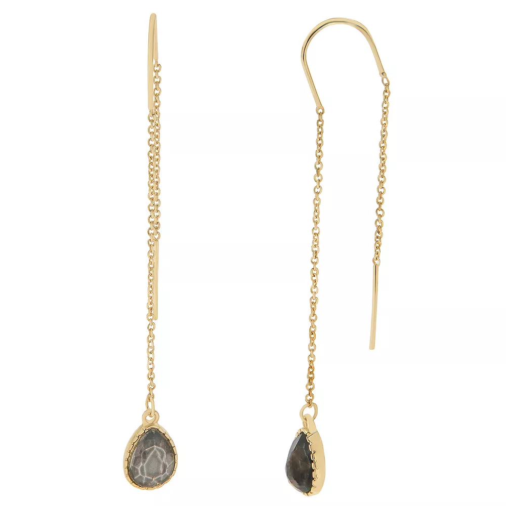 Finish off your ensemble with a touch of dark glamour in these black crystal-studded gold tone threader earrings from LC Lauren Conrad.