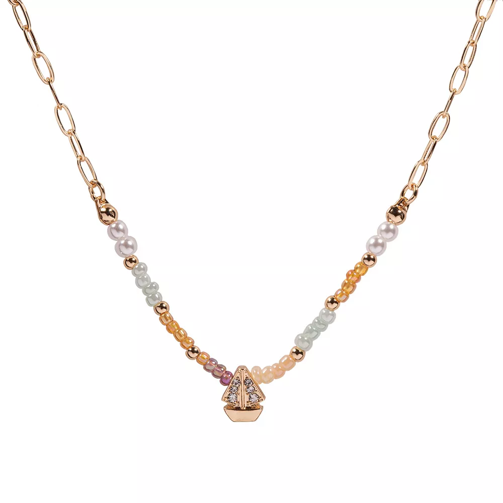 Add a nautical touch to your wardrobe with this beaded gold tone sailboat necklace from LC Lauren Conrad.