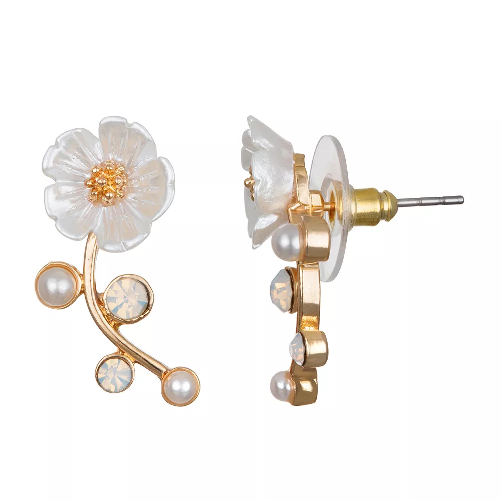 Update your look with fresh, new style with these gold tone flower with stem button earrings from LC Lauren Conrad.