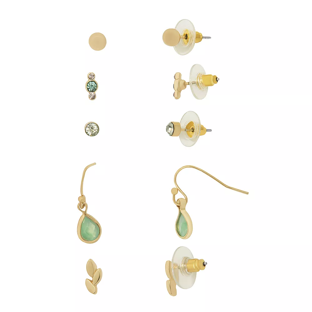 This LC Lauren Conrad Gold Tone Green Accents Stud and Fish Hook Earring Set is exquisite.
