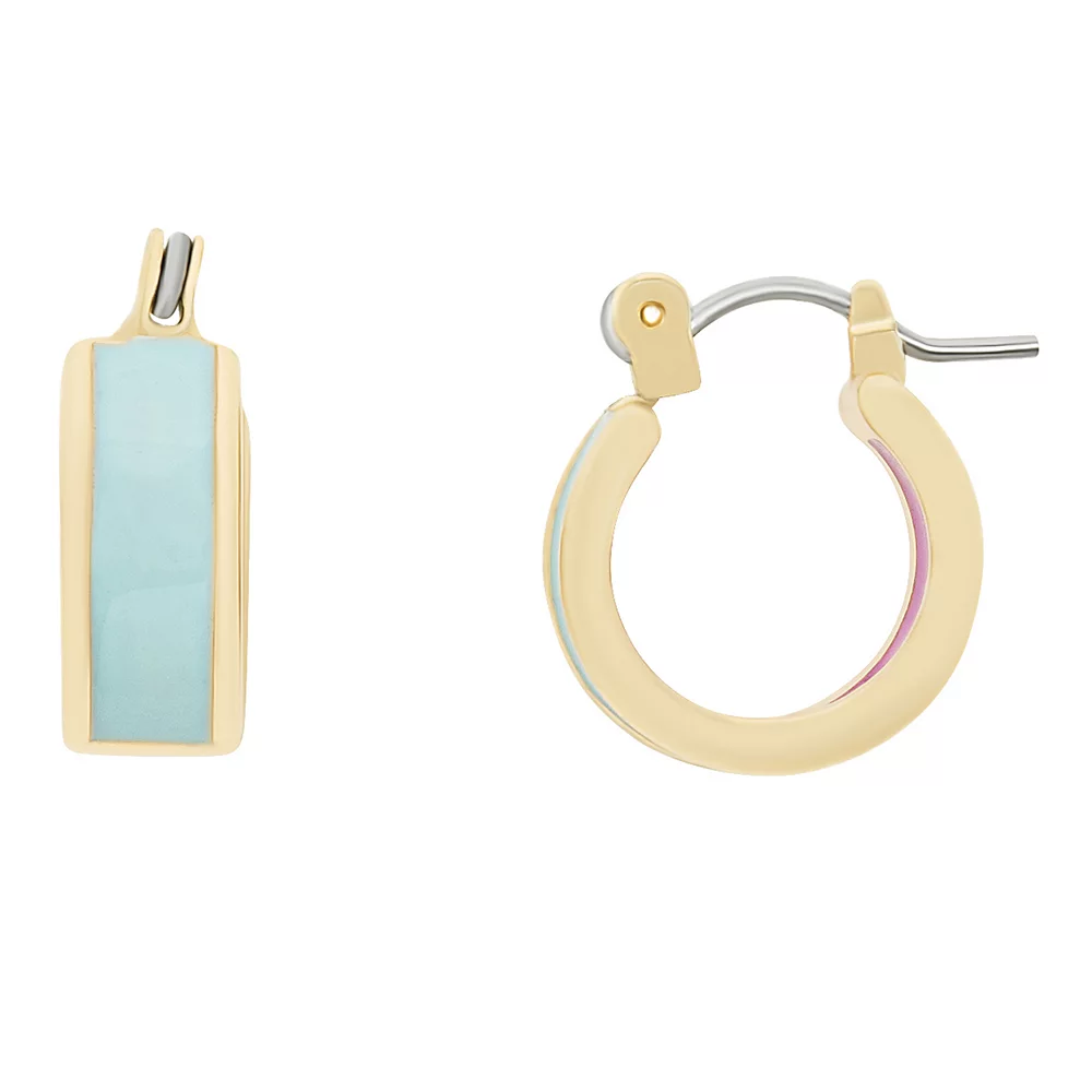 You will love the unique design of these pink and blue enamel huggie hoop earrings by LC Lauren Conrad.