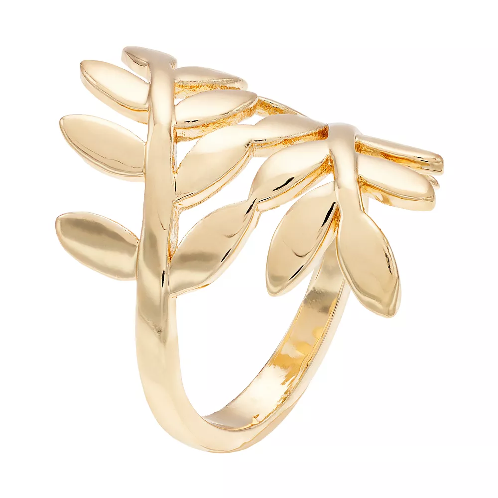 Accent your look with this LC Lauren Conrad gold tone wide leaf wrap ring, a laudatory gift for a victorious woman.
