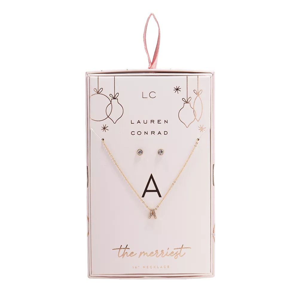 Show your personality with this adorable letter monogram necklace and stud earring set from LC Lauren Conrad.