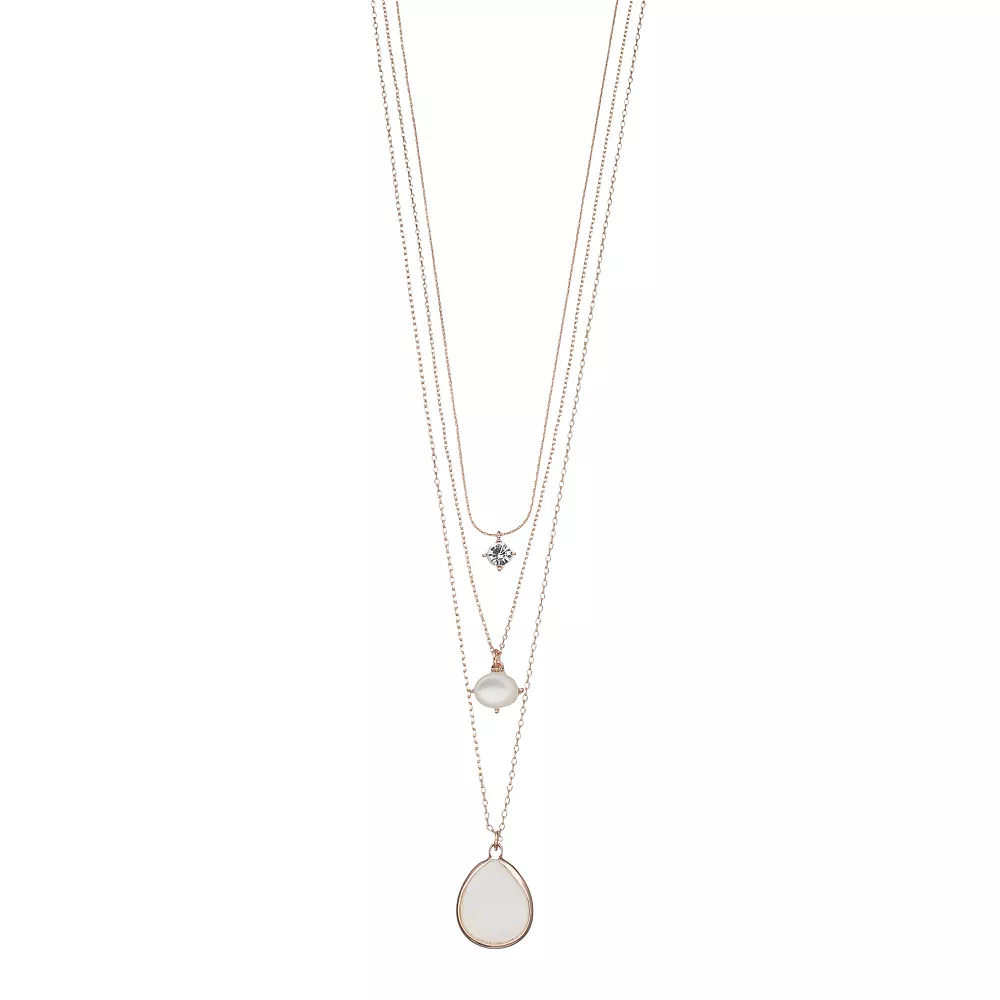 Layers of style lend eye-catching flair to this mother-of-pearl necklace.