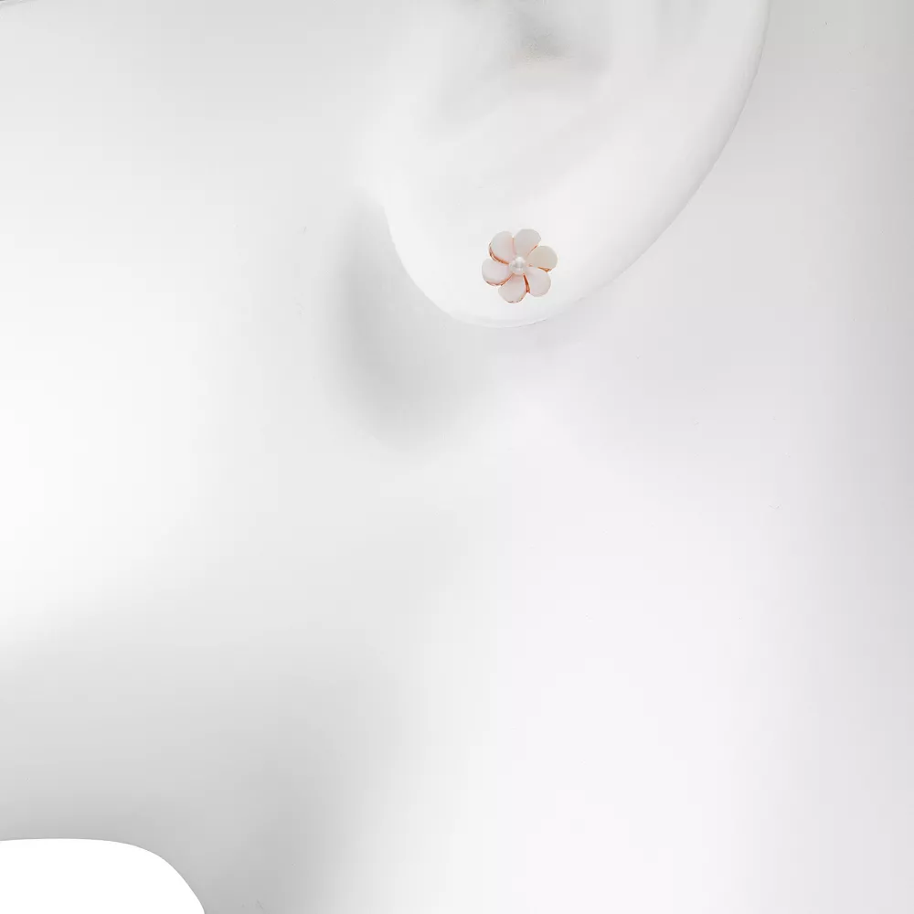 Mother-of-pearl details lend natural beauty to these chic flower earrings.