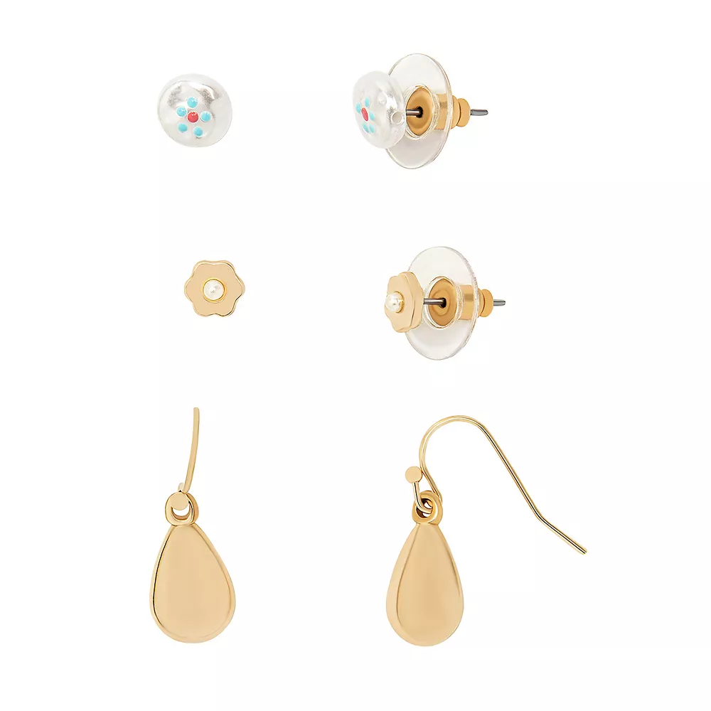 Mix things up with this LC Lauren Conrad Rose Gold Tone Multi Floral Painted Simulated Pearl and Teardrop Earrings Set.