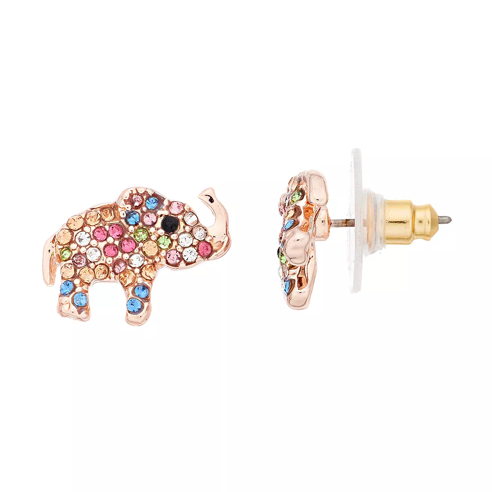 Add a sparkling element with these rose gold tone rainbow simulated stone, elephant stud earrings from LC Lauren Conrad.