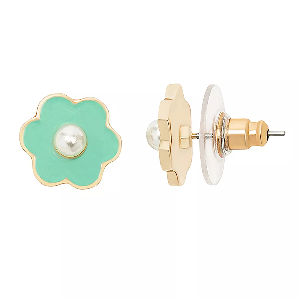 These LC Lauren Conrad Rose Gold Tone Teal Flower with Simulated Pearl Post Earrings look terrific.