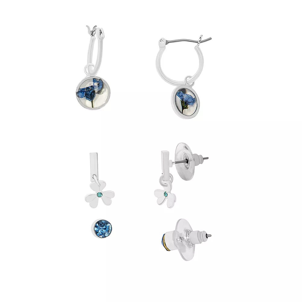 Accessorize in style with this blue pressed flower earring set by LC Lauren Conrad.