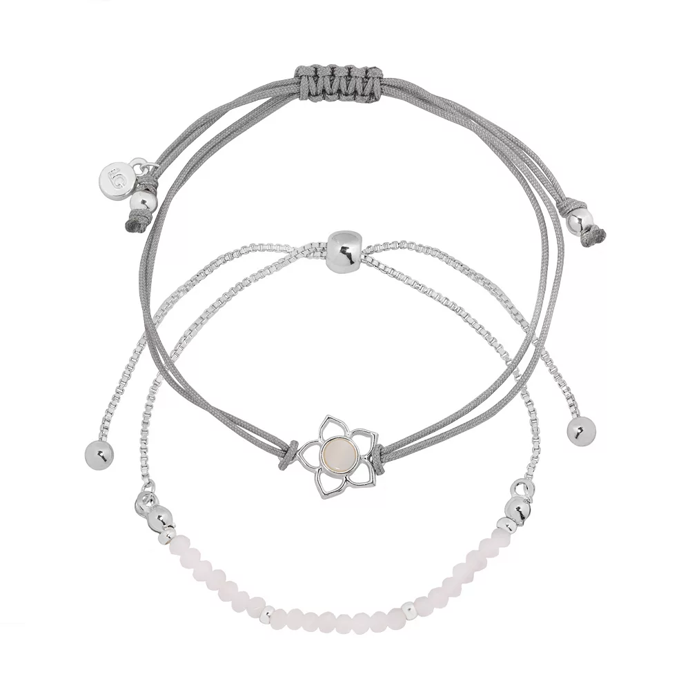 This gorgeous silver tone bracelet set is the perfect way to finish any outfit.