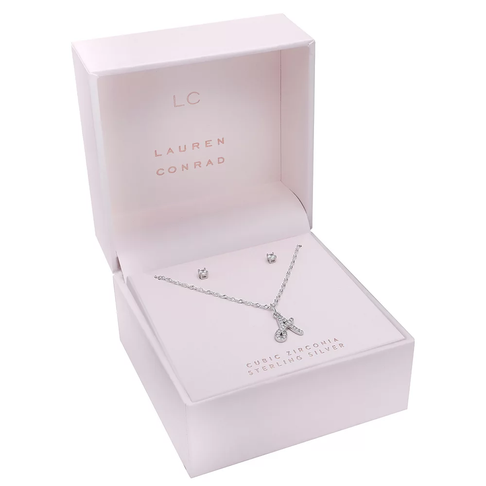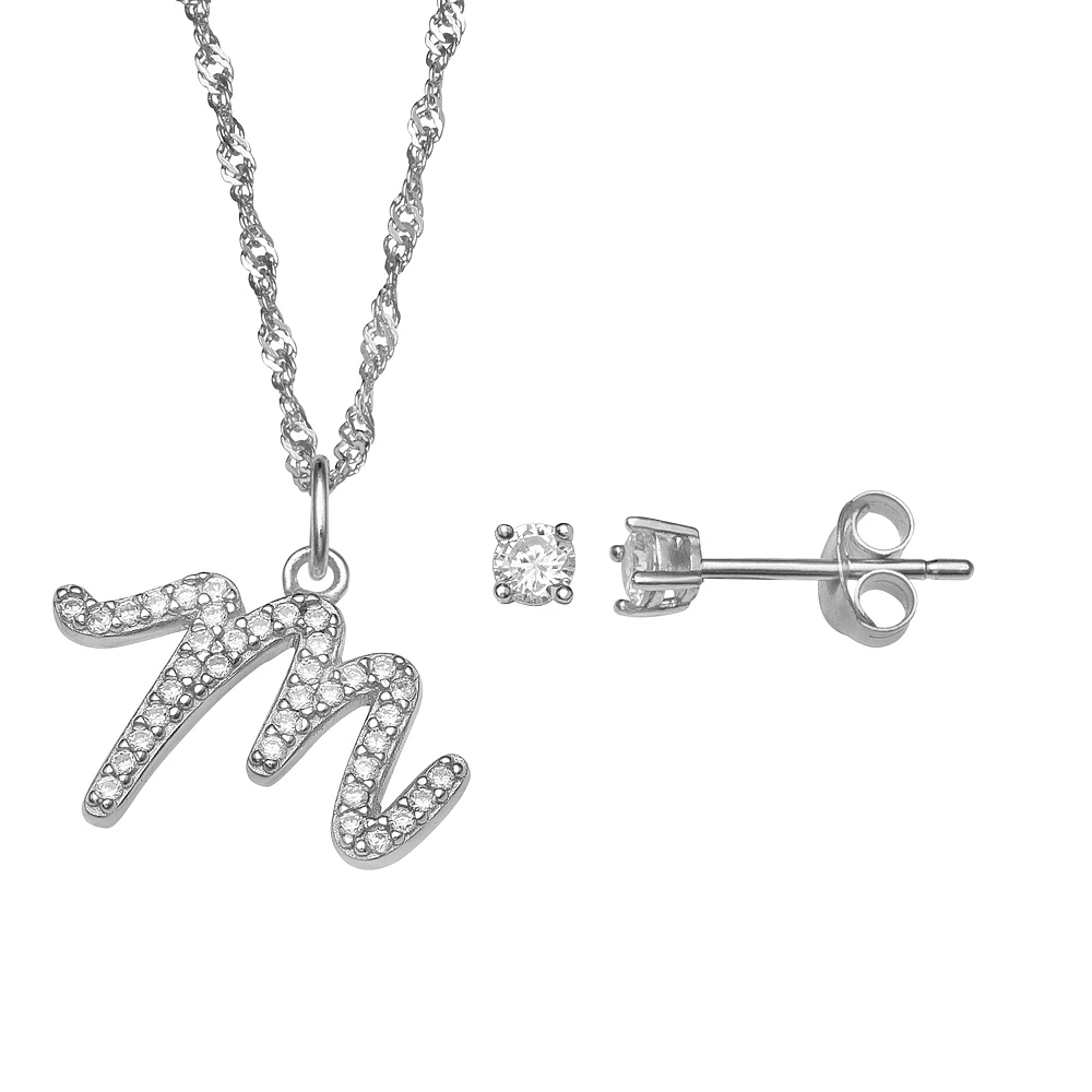 Show pride in your individuality with this beautiful sterling silver cubic zirconia stud earrings and initial pendant necklace set.
